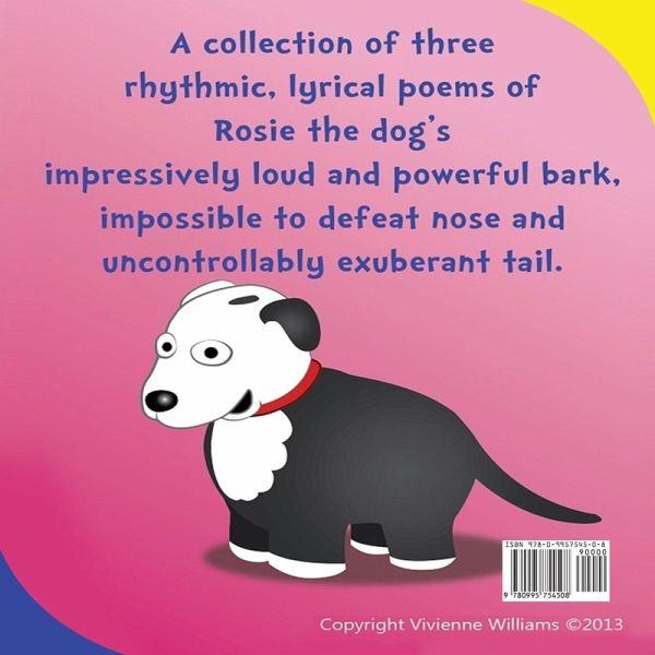 This is a collection of three beautifully illustrated, rhythmic, humourous poems about Rosie the pet dog and her impressively loud powerful bark, her impossible to defeat nose and uncontrollable exuberant tail.