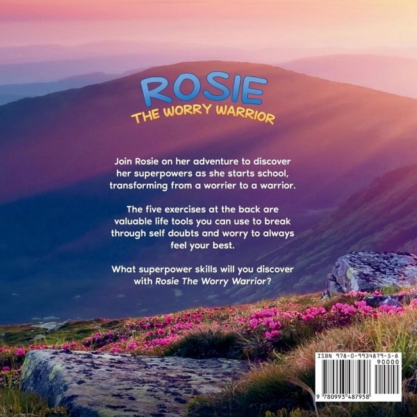 Transform From a Worrier to a Warrior. Join Rosie, the cute Cavapoo dog, as she starts puppy school and transforms from a worrier to a warrior. Learn how to understand feelings and focus on developing strengths and superpowers. After engaging in the rhyming story, five more in depth exercises at the back will help you learn the ways of the Worry Warrior too! You can use these tools anytime, anywhere, to break through worry and feel your best. Grown ups can also use these valuable life skills to help support children, along with a link to more free resources and fun activities for all ages. Throughout this book, children will be introduced to the benefits of focusing on what they want and how they wish to feel. They will learn how to use their imagination to communicate with their mind, and their breath and posture (fun power-poses) to communicate with their body. Learn empowering techniques to take positive action towards what is within their control and release anything they cannot change. Rosie The Worry Warrior is designed to empower children to be their own hero and focus on their superpower strengths. What superpower skills will you discover with Rosie The Worry Warrior?