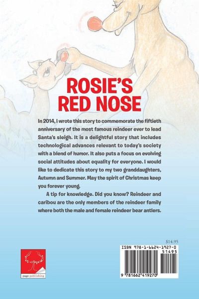 In 2014, I wrote this story to commemorate the fiftieth anniversary of the most famous reindeer ever to lead Santa's sleigh. It is a delightful story that includes technological advances relevant to today's society with a blend of humor. It also puts a focus on evolving social attitudes about equality for everyone. I would like to dedicate this story to my two granddaughters, Autumn and Summer. May the spirit of Christmas keep you forever young. A tip for knowledge. Did you know? Reindeer and caribou are the only members of the reindeer family where both the male and female reindeer bear antlers.