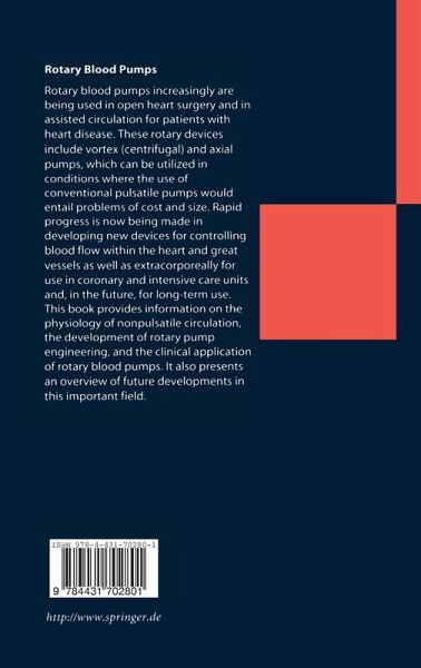 Rotary blood pumps increasingly are being used in open heart surgery and in assisted circulation for patients with heart disease. These rotary devices include vortex (centrifugal) and axial pumps, which can be utilized in conditions where the use of conventional pulsatile pumps would entail problems of cost and size. Rapid progress is now being made in developing new devices for controlling blood flow within the heart and great vessels as well as extracorporeally for use in coronary and intensive care units and, in the future, for long-term use. This book provides information on the physiology of nonpulsatile circulation, the development of rotary pump engineering, and the clinical application of rotary blood pumps. It also presents an overview of future developments in this important field.