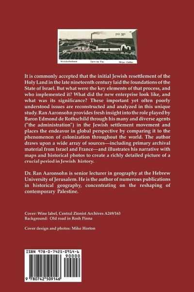 It is commonly accepted that the initial Jewish resettlement of the Holy Land in the late nineteenth century laid the foundations of the State of Israel. But what were the key elements of that process, and who implemented it? What did the new enterprise look like, and what was its significance? These important yet often poorly understood issues are reconstructed and analyzed in this unique study. Ran Aaronsohn provides fresh insight into the role played by Baron Edmond de Rothschild through his many and diverse agents ('the administration') in the Jewish settlement movement and places the endeavor in global perspective by comparing it to the phenomenon of colonization throughout the world.