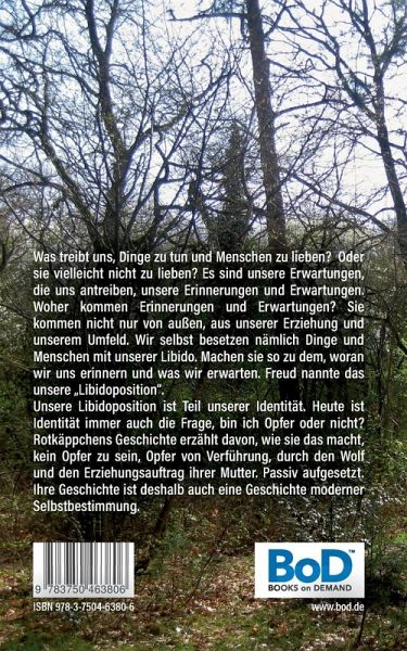 Was treibt uns, Dinge zu tun und Menschen zu lieben? Oder sie vielleicht nicht zu lieben? Es sind unsere Erwartungen, die uns antreiben, unsere Erinnerungen und Erwartungen. Woher kommen Erinnerungen und Erwartungen? Sie kommen nicht nur von außen, aus unserer Erziehung und unserem Umfeld. Wir selbst besetzen nämlich Dinge und Menschen mit unserer Libido. Machen sie so zu dem, woran wir uns erinnern und was wir erwarten. Freud nannte das unsere "Libidoposition".Unsere Libidoposition ist Teil unserer Identität. Heute ist Identität immer auch die Frage, bin ich Opfer oder nicht? Rotkäppchens Geschichte erzählt davon, wie sie das macht, kein Opfer zu sein, Opfer von Verführung, durch den Wolf und den Erziehungsauftrag ihrer Mutter. Passiv aufgesetzt. Ihre Geschichte ist deshalb auch eine Geschichte moderner Selbstbestimmung.