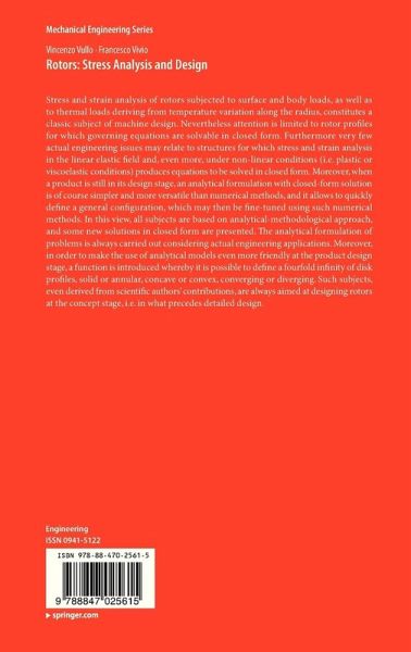 Stress and strain analysis of rotors subjected to surface and body loads, as well as to thermal loads deriving from temperature variation along the radius, constitutes a classic subject of machine design. Nevertheless attention is limited to rotor profiles for which governing equations are solvable in closed form. Furthermore very few actual engineering issues may relate to structures for which stress and strain analysis in the linear elastic field and, even more, under non-linear conditions (i.e. plastic or viscoelastic conditions) produces equations to be solved in closed form. Moreover, when a product is still in its design stage, an analytical formulation with closed-form solution is of course simpler and more versatile than numerical methods, and it allows to quickly define a general configuration, which may then be fine-tuned using such numerical methods.
