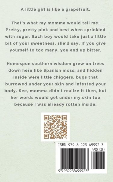 A little girl is like a grapefruit. That's what my momma would tell me. Pretty, pretty pink and best when sprinkled with sugar. Each boy would take just a little bit of your sweetness, she'd say. If you give yourself to too many, you end up bitter. Homespun southern wisdom grew on trees down here like Spanish moss, and hidden inside were little chiggers, bugs that burrowed under your skin and infested your body. See, momma didn't realize it then, but her words would get under my skin too because I was already rotten inside. Portions of this novel were previously published under the titles Something in the Water, The Death of Lila Jane, and Heathens.