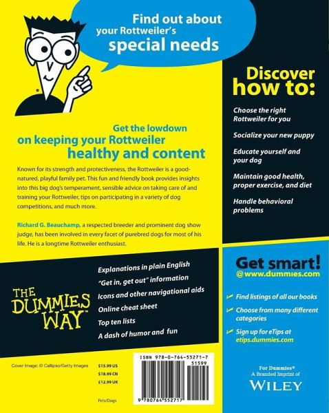 Part of the "For Dummies" series on dogs, this text explores the history, housetraining, exercise, feeding, first aid, grooming, training and basic health tips related to Rottweilers.