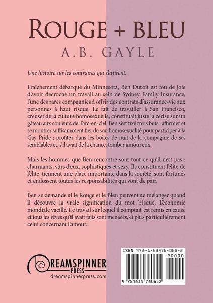 Contraires qui s'attirent, numéro hors série Fraîchement débarqué du Minnesota, Ben Dutoit est fou de joie d'avoir décroché un travail au sein de Sydney Family Insurance, l'une des rares compagnies à offrir des contrats d'assurance-vie aux personnes à haut risque. Le fait de travailler à San Francisco, creuset de la culture homosexuelle, constituait juste la cerise sur un gâteau aux couleurs de l'arc-en-ciel. Ben s'est fixé trois buts : affirmer et se montrer suffisamment fier de son homosexualité pour participer à la Gay Pride ; profiter dans les boîtes de nuit de la compagnie de ses semblables et, s'il avait de la chance, tomber amoureux. Mais les hommes que Ben rencontre sont tout ce qu'il n'est pas : charmants, sûrs d'eux, sophistiqués et sexy. Ils constituent l'élite de l'élite, tiennent une place importante dans la société, sont fortunés et endossent toutes les responsabilités qui vont de pair. Ben se demande si le Rouge et le Bleu peuvent se mélanger quand il découvre la vraie signification du mot 'risque'. L'économie mondiale vacille. Le travail sur lequel il comptait est remis en cause et tous les rêves qu'il avait faits sont menacés, et plus particulièrement celui concernant l'amour.