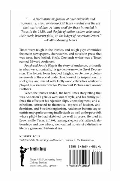 Times were tough in the thirties, and tough guys chronicled the era in newspapers, short stories, and novels in prose that was terse, hard-boiled, bleak. One such writer was a Texan named Edward Anderson. Rough and Rowdy Ways is the story of Edward Anderson, primarily in what were, ironically, his golden years--the Great Depression. The laconic loner hopped freights, wrote two proletarian novels of the social underclass, looked for inspiration in a shot glass, and mixed with Hollywood celebrities while employed as a screenwriter for Paramount Pictures and Warner Brothers. When the thirties ended, the hard-times storytelling that was Anderson's genius went out of style, and his family suffered the effects of his rejection slips, unemployment, and alcoholism. Attracted to theoretical aspects of fascism, anti-Semitism, and Swedenborgianism, Anderson became an eccentric unpopular among intellectuals as well as the poor folk whose plight he had sketched too well in prose. He died in Brownsville, Texas, in 1969, leaving a legacy of shattered relationships and two whole, well-crafted novels of a distinctive literary genre and historical era