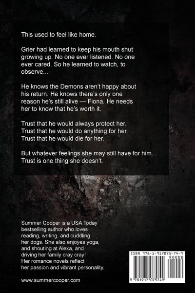 Enjoy this steamy contemporary series by USA Today Bestselling dark billionaire romance author Summer Cooper and her friend Sienna Chance! This used to feel like home. Grier had learned to keep his mouth shut growing up. No one ever listened. No one ever cared. So he learned to watch, to observe... He knows the Demons aren't happy about his return. He knows there's only one reason he's still alive - Fiona. He needs her to know that he's worth it. Trust that he would always protect her. Trust that he would do anything for her. Trust that he would die for her. But whatever feelings she may still have for him... Trust is one thing she doesn't. Get ready for a fiery tale of love and loyalty! Delve into the sizzling pages of our motorcycle club romance, where the daughter of the club leader seizes control, but her heart desires one man - Grier, the runaway member she's admired for years. Unveil the dangerous passion and captivating tension as they navigate desire, trust, and the MC's gritty world! The reading order of the Rough series is as follows: 1. Rough Start 2. Rough Ride 3. Rough Choice 4. Rough Return 5. Rough Patch 6. Rough Road 7. Rough Trip 8. Rough Night 9. Rough Love This is an adult only motorcycle club steamy contemporary romance, appealing to readers who love fated mates, new adult romance, forbidden and sizzling hot romances with a twist. Perfect for fans of Sierra Rose, Roxy Sloane, Bella J, Sara Cate and Lisa Renee Jones. This is the large print version, created specifically for low-sight readers. Enjoy!