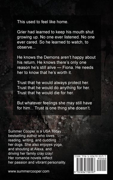 Enjoy this steamy contemporary series by USA Today Bestselling dark billionaire romance author Summer Cooper and her friend Sienna Chance! This used to feel like home. Grier had learned to keep his mouth shut growing up. No one ever listened. No one ever cared. So he learned to watch, to observe... He knows the Demons aren't happy about his return. He knows there's only one reason he's still alive - Fiona. He needs her to know that he's worth it. Trust that he would always protect her. Trust that he would do anything for her. Trust that he would die for her. But whatever feelings she may still have for him... Trust is one thing she doesn't. Get ready for a fiery tale of love and loyalty! Delve into the sizzling pages of our motorcycle club romance, where the daughter of the club leader seizes control, but her heart desires one man - Grier, the runaway member she's admired for years. Unveil the dangerous passion and captivating tension as they navigate desire, trust, and the MC's gritty world! The reading order of the Rough series is as follows: 1. Rough Start 2. Rough Ride 3. Rough Choice 4. Rough Return 5. Rough Patch 6. Rough Road 7. Rough Trip 8. Rough Night 9. Rough Love This is an adult only motorcycle club steamy contemporary romance, appealing to readers who love fated mates, new adult romance, forbidden and sizzling hot romances with a twist. Perfect for fans of Sierra Rose, Roxy Sloane, Bella J, Sara Cate and Lisa Renee Jones. This is the large print version, created specifically for low-sight readers. Enjoy!