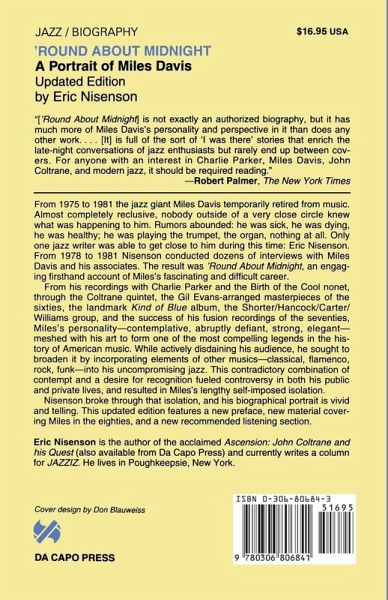 From 1975 to 1981 the jazz giant Miles Davis temporarily retired from music. Almost completely reclusive, nobody outside of a very close circle knew what was happening to him. Rumors abounded: he was sick, he was dying, he was healthy; he was playing the trumpet, the organ, nothing at all. Only one jazz writer was able to get close to him during this time: Eric Nisenson. From 1978 to 1981 Nisenson conducted dozens of interviews with Miles Davis and his associates. The result was 'Round About Midnight, an engaging firsthand account of Miles's fascinating and difficult career. From his recordings with Charlie Parker and the Birth of the Cool nonet, through the Coltrane quintet, the Gil Evans-arranged masterpieces of the sixties, the landmark Kind of Blue album, the Shorter/Hancock/Carter/Williams group, and the success of his fusion recordings of the seventies, Miles's personality - contemplative, abruptly defiant, strong, elegant - meshed with his art to form one of the most compelling legends in the history of American music. While actively disdaining his audience, he sought to broaden it by incorporating elements of other musics - classical, flamenco, rock, funk - into his uncompromising jazz. This contradictory combination of contempt and a desire for recognition fueled controversy in both his public and private lives, and resulted in Miles's lengthy self-imposed isolation. Nisenson broke through that isolation, and his biographical portrait is vivid and telling. This updated edition features a new preface, new material covering Miles in the eighties, and a new recommended listening section.