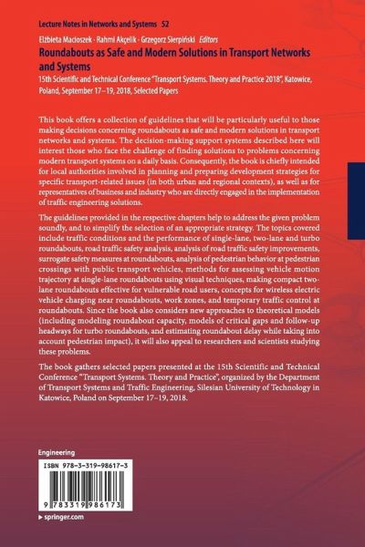 This book offers a collection of guidelines that will be particularly useful to those making decisions concerning roundabouts as safe and modern solutions in transport networks and systems. The decision-making support systems described here will interest those who face the challenge of finding solutions to problems concerning modern transport systems on a daily basis. Consequently, the book is chiefly intended for local authorities involved in planning and preparing development strategies for specific transport-related issues (in both urban and regional contexts), as well as for representatives of business and industry who are directly engaged in the implementation of traffic engineering solutions.