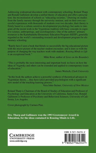Addressing widespread discontent with contemporary schooling, Roland Tharp and Ronald Gallimore develop a unified theory of education and offer a prescription: the reconstitution of schools as 'educating societies'. Drawing on studies from the family nursery through the university seminar, and on their own successful experiences with thousands of students over two decades, their theory is firmly based in a culture-sensitive devellopmental psychology but seeks to integrate all the recent work in the Vygotskian tradition with basic concepts in cognitive science, anthropology, and sociolinguistics. One of the authors' primary resources is the Kamehameha Elementary Education Program (KEEP), generally regarded as the world's outstanding research and development program for elementary schooling.