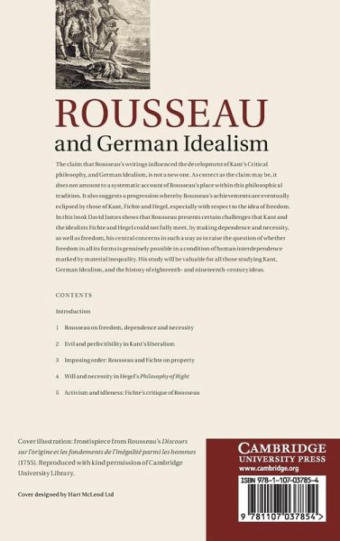 The claim that Rousseau's writings influenced the development of Kant's critical philosophy, and German idealism, is not a new one. As correct as the claim may be, it does not amount to a systematic account of Rousseau's place within this philosophical tradition. It also suggests a progression whereby Rousseau's achievements are eventually eclipsed by those of Kant, Fichte and Hegel, especially with respect to the idea of freedom. In this book David James shows that Rousseau presents certain challenges that Kant and the idealists Fichte and Hegel could not fully meet, by making dependence and necessity, as well as freedom, his central concerns, and thereby raises the question of whether freedom in all its forms is genuinely possible in a condition of human interdependence marked by material inequality. His study will be valuable for all those studying Kant, German idealism and the history of eighteenth- and nineteenth-century ideas.