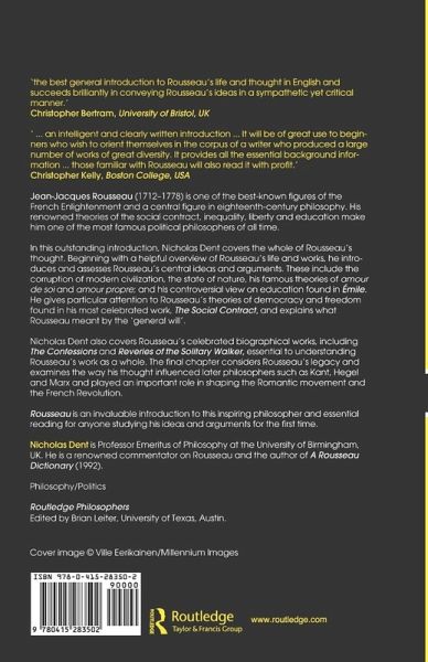 'This is a very fine piece of work indeed. In fact, I think it is the best general introduction to Rousseau's life and thought in English and succeeds brilliantly in conveying Rousseau's ideas in a sympathetic yet critical manner. The work is well paced and accessible to the person who knows nothing about Rousseau but wants to find out, whilst still managing to be stimulating to the specialist. I would be very happy to recommend this work to students and to others.' - Chris Bertram, University of Bristol