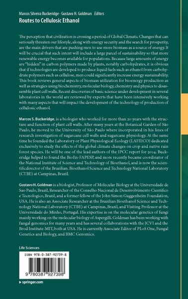 Marcos S. Buckeridge, is a biologist who worked for more than 20 years with the structure and function of plant cell walls. After many years at the Botanical Garden of São Paulo, he moved to the University of São Paulo where incorporated in his lines of research investigation of sugarcane cell walls and sugarcane physiology. At the same time he founded the Laboratory or Plant Physiological Ecology (LAFIECO) dedicated exclusively to study the effects of the global climate changes on crop and native rain forest species. He will be one of the lead authors of the IPCC report for 2014. Buckeridge helped to found the BioEn-FAPESP, one or the most important research programs in bioenergy in Brazil. More recently he became coordinator of the National Institute of Science and Technology of Bioethanol, and is now the scientific director of the Brazilian Bioethanol Science and Technology National Laboratory (CTBE) at Campinas, Brazil. He is communicating editor for the journals Trees: structure and function, Global Change Biology Bioenergy and Bioenergy Research. Gustavo H. Goldman is a biologist, Professor of Molecular Biology at the Universidade de Sao Paulo, Brazil, Researcher of the Conselho Nacional de Desenvolvimento Cientifico e Tecnologico, Brazil, and a former fellow of the John Simon Guggenheim Foundation, USA. He is also an Associate Researcher at the Brazilian Bioethanol Science and Technology National Laboratory (CTBE) at Campinas, Brazil, and Visiting Professor at the Universidade do Minho, Portugal. His expertise is on the molecular genetics of fungi mainly working on the molecular biology of Aspergilli. Goldman has been working with fungal genomics for many years and has several collaborations with the JCVI and the Brod Institute-MIT, both at USA. He is currently Associate Editor of PLoS One, Fungal Genetics and Biology, and BMC Genomics.