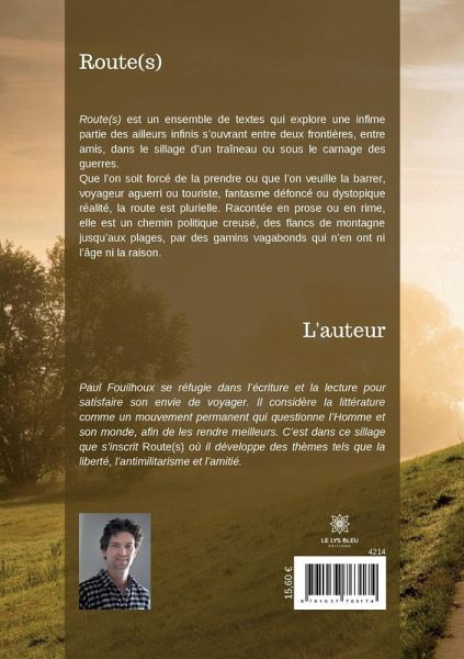 Route(s) est un ensemble de textes qui explore une infime partie des ailleurs infinis s¿ouvrant entre deux frontières, entre amis, dans le sillage d¿un traîneau ou sous le carnage des guerres. Que l¿on soit forcé de la prendre ou que l¿on veuille la barrer, voyageur aguerri ou touriste, fantasme défoncé ou dystopique réalité, la route est plurielle. Racontée en prose ou en rime, elle est un chemin politique creusé, des flancs de montagne jusqüaux plages, par des gamins vagabonds qui n¿en ont ni l¿âge ni la raison.