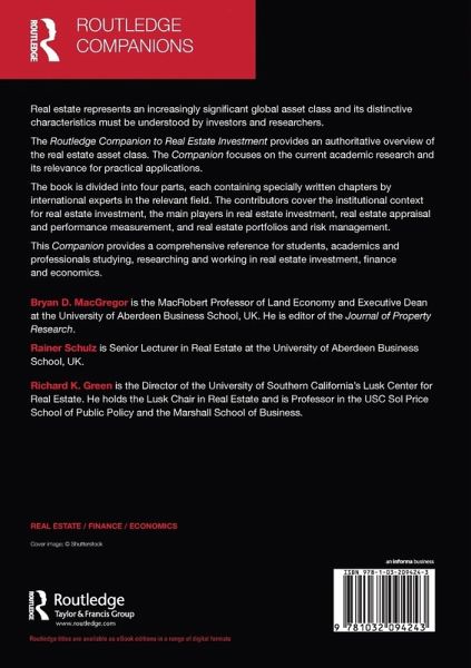 The Routledge Companion to Real Estate Investment provides an authoritative overview of the real estate asset class. The Companion focuses on the current academic research and its relevance for practical applications.