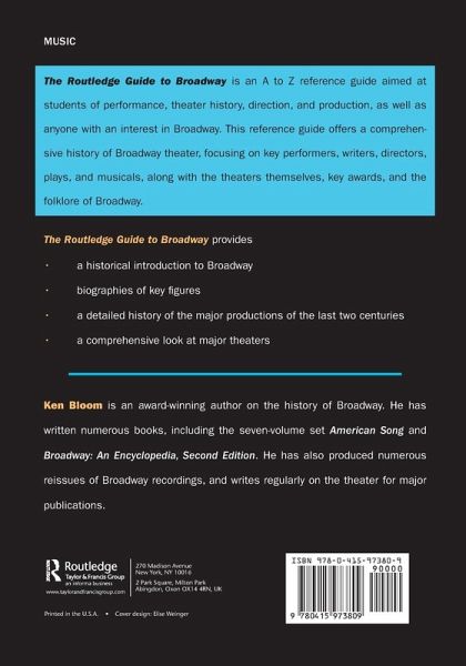 Broadway is the center of American theater, where all the great plays and musicals make their mark. Students across the country in theater history, performance, and direction/production look to Broadway for their inspiration. While there are illustrated coffee table type books on Broadway, there are few that offer a comprehensive look at the key figures and productions of the last two centuries. The Routledge Guide to Broadway offers this information in an easy-to-use, inexpensive format that will appeal to students, professors, and theatrical professionals.