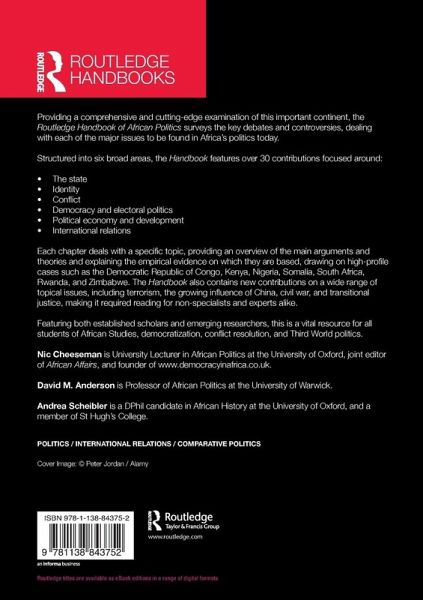 Each chapter deals with a specific topic, providing an overview of the main arguments and theories and explaining the empirical evidence that they are based on, drawing on high-profile cases such as the Democratic Republic of Congo, Kenya, Nigeria, Somalia, South Africa, Rwanda and Zimbabwe. The Handbook also contains new contributions on a wide range of topical issues, including terrorism, the growing influence ofChina, civil war, and transitional justice, making it required reading for non-specialists and experts alike.