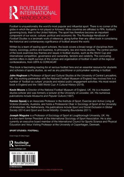 Written by a team of leading sport scholars, the book covers a broad range of disciplines from history, sociology, politics and business, to philosophy, law and media studies. The central section of the book examines key themes and issues in football studies, such as the World Cup and international competition, governance and ownership, fandom and celebrity. The concluding section offers in-depth surveys of the culture and organisation of football in each of the regional confederations, from UEFA to CONCACAF.