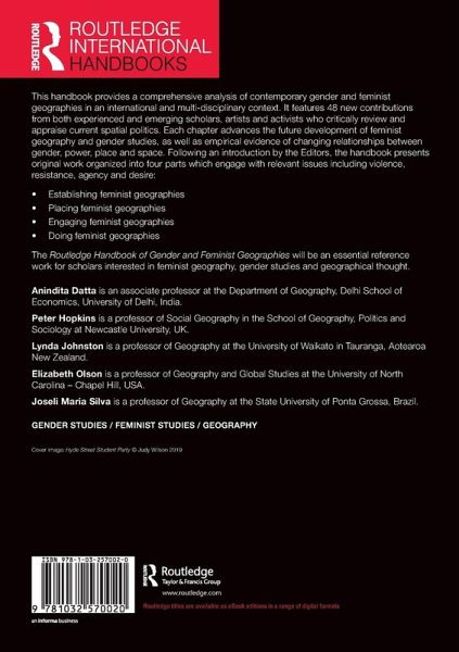 The Routledge Handbook of Gender and Feminist Geographies will be an essential reference work for scholars interested in feminist geography, gender studies and geographical thought.