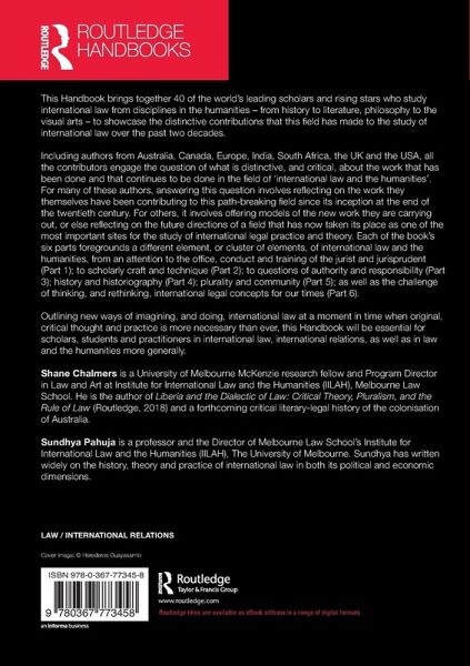 This Handbook brings together 40 of the world's leading scholars and rising stars who study international law from disciplines in the humanities - from history to literature, philosophy to the visual arts - to showcase the distinctive contributions that this field has made to the study of international law over the past two decades.