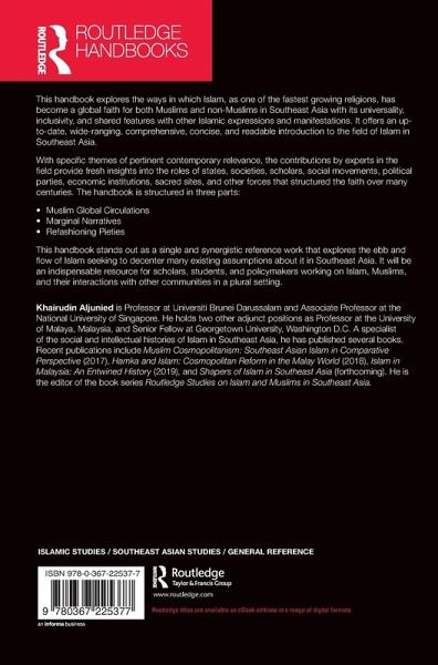 This handbook explores the ways in which Islam, as one of the fastest growing religions, has become a global faith for both Muslims and non-Muslims in Southeast Asia with its universality, inclusivity, and shared features with other Islamic expressions and manifestations. It offers an up-to-date, wide-ranging, comprehensive, concise, and readable introduction to the field of Islam in Southeast Asia.