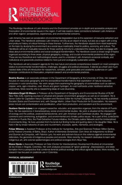 The Routledge Handbook of Latin America and the Environment provides an in-depth and accessible analysis and theorization of environmental issues in the region. It will help readers make connections between Latin American and other regions' perspectives, experiences, and environmental concerns.