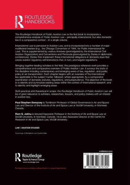 The Routledge Handbook of Public Aviation Law is the first book to incorporate a comprehensive analysis of Public Aviation Law - principally international, but also domestic law in a comparative context - in a single volume.