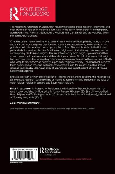 The Routledge Handbook of South Asian Religions presents critical research, overviews and case studies on religion in historical South Asia and in the seven nation states of contemporary South Asia: India, Pakistan, Bangladesh, Nepal, Bhutan, Sri Lanka, and the Maldives.
