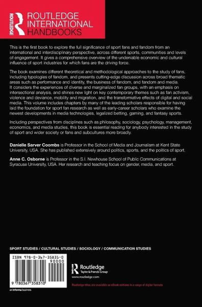 The book examines different theoretical and methodological approaches to the study of fans, including typologies of fandom, and presents cutting-edge discussion across broad thematic areas such as performance and identity, the business of fandom, and fandom and media. It considers the experiences of diverse and marginalized fan groups, with an emphasis on intersectional analysis, and shines new light on key contemporary themes such as fan activism, violence and deviance, mobility and migration, and the transformative effects of digital and social media. This volume includes chapters by many of the leading scholars responsible for having laid the foundation for sport fan research as well as early-career scholars who examine the newest developments in media technologies, legalized betting, gaming, and fantasy sports.