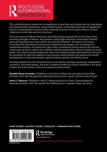 The book examines different theoretical and methodological approaches to the study of fans, including typologies of fandom, and presents cutting-edge discussion across broad thematic areas such as performance and identity, the business of fandom, and fandom and media. It considers the experiences of diverse and marginalized fan groups, with an emphasis on intersectional analysis, and shines new light on key contemporary themes such as fan activism, violence and deviance, mobility and migration, and the transformative effects of digital and social media. This volume includes chapters by many of the leading scholars responsible for having laid the foundation for sport fan research as well as early-career scholars who examine the newest developments in media technologies, legalized betting, gaming, and fantasy sports.