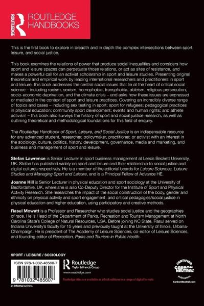 The Routledge Handbook of Sport, Leisure and Social Justice is an indispensable resource for any advanced student, researcher, policymaker, practitioner, or activist with an interest in the sociology, culture, politics, history, development, governance, media and marketing, and business and management of sport and leisure.