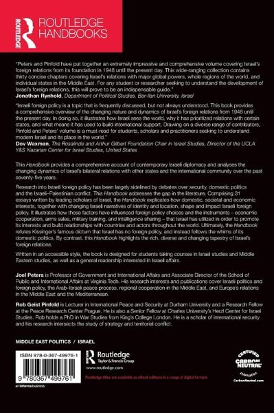 "Israeli foreign policy is a topic that is frequently discussed, but not always understood. This book provides a comprehensive overview of the changing nature and dynamics of Israel's foreign relations from 1948 until the present day. In doing so, it illustrates how Israel sees the world, why it has prioritized relations with certain states, and what means it has used to build international support. Drawing on a diverse range of contributors, Pinfold and Peters' volume is a must-read for students, scholars and practitioners seeking to understand modern Israel and its place in the world."
