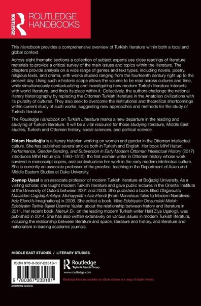The Routledge Handbook on Turkish Literature marks a new departure in the reading and studying of Turkish literature. It will be a vital resource for those studying literature, Middle East studies, Turkish and Ottoman history, social sciences, and political science.