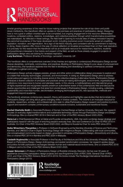 This handbook offers a comprehensive overview of key themes and agendas in contemporary Participatory Design. Building on Participatory Designâ s core values of empowerment and democracy, it explores how the field is developing and diversifying to address contemporary societal challenges in a global community.