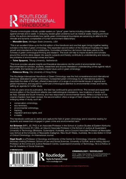 "This is an excellent follow-up to the first edition of the handbook and one again brings together leading scholars in the field of green criminology. This expanded second edition of the handbook illustrates the rapid growth and importance of the subdiscipline. It provides a broad tour de horizon that does justice to the richness of green criminological thinking and research. The book will help to inspire students and scholars around the world to delve deeper into specific subjects and thereby contribute to understanding and reducing theproblems of environmental crimes and harm." - Toine Spapens, Tilburg University, Netherlands