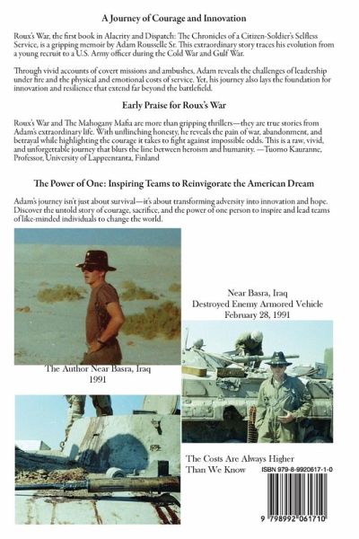 Roux's War, the first book in Alacrity and Dispatch: The Chronicles of a Citizen-Soldier's Selfless Service, is a powerful and inspirational military memoir by Adam Rousselle Sr. This extraordinary autobiography traces Adam's transformation from an uncertain teenager to a decorated U.S. Army officer, set against pivotal moments in Cold War and Gulf War history. For fans of American Sniper and other gripping military biographies, Roux's War delivers an unparalleled first-hand account of combat leadership, courage, and resilience. With unflinching candor, Adam recounts rigorous training, covert missions, and the stark realities of leading under fire. The memoir vividly captures high-stakes operations-from training Contras in the Honduran jungle and surviving ambushes to enduring betrayal within his own ranks-all while unveiling the emotional and physical toll of life on the frontlines. More than a war memoir, Roux's War explores the sacrifices demanded by military service, revealing fractured family ties, profound loss, and the visible and invisible scars borne by those who safeguard national interests. Adam's story is a testament to the human spirit's resilience and integrity amidst unimaginable challenges. This action-packed memoir also lays the foundation for an extraordinary series connecting American military history with global innovation. Adam's leadership extends beyond the battlefield, from pioneering satellite timber inventory methods to safeguarding the U.S. energy grid by exposing systemic fraud in the utility industry. His mission culminates in founding a utility to export American electricity to Puerto Rico, Cuba, Haiti, and Central America. Perfect for readers of military history, leadership books, and inspirational nonfiction, Roux's War combines the raw intensity of combat with visionary strategies for global change. Whether as a gripping nonfiction audiobook or a must-read military memoir, Adam Rousselle's story challenges readers to imagine a future where personal sacrifice drives transformative progress. If you're seeking stories of faith, courage, and combat leadership-or a military history audiobook that rivals American Sniper-Roux's War will inspire, inform, and equip you to face life's challenges with determination.