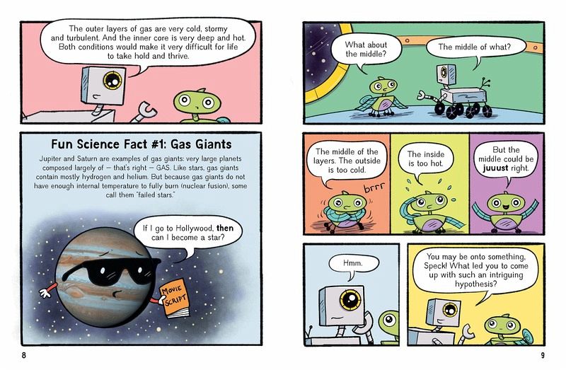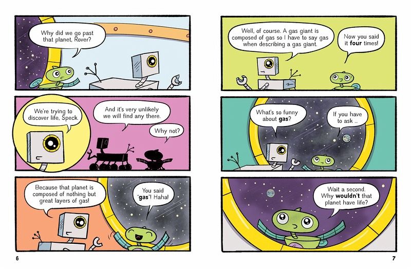 "Rover and Speck have found a new kind of planet to explore: a gas giant. The pair don't know what to expect when they launch themselves from their spaceship, so they're thrilled when they find life there. That is, until shark-like creatures start shooting sparks at them. And things only get worse when Rover is zapped out of commission by one of their bolts, leaving Speck to save the day on his own. Thankfully, Speck makes a new friend, Jelli, who's happy to help him try to avoid the Spark Sharks and get Rover back to their spaceship for a reboot. But will they be able to do it in time?"--