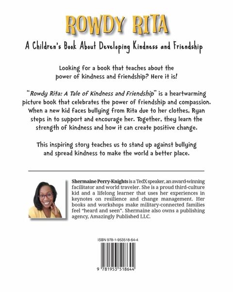 Rowdy Rita inspires your child to be kind. Perfect for ages 7 to 9, the story follows a new kid who is bullied on her first day of school. However, with the help of Ryan, both build the courage to involve a counselor. What sets this book apart is its positive and empowering message. We want to encourage kids to stand up for what's right and make a difference in their community. The relatable characters, captivating story, and beautiful illustrations make "Rowdy Rita" a must-have addition to your child's book collection. This book is perfect for parents who are concerned about the impact of bullying on their child. Get your copy today and help make the world a kinder place, one act of kindness at a time.