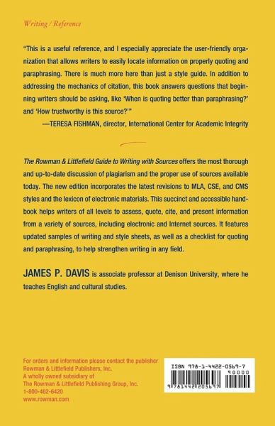 The Rowman & Littlefield Guide to Writing with Sources offers the most thorough and up-to-date discussion of plagiarism and the proper use of sources available today. The new edition incorporates the latest revisions to MLA, CSE, and CMS styles and the lexicon of electronic materials. This succinct and accessible handbook helps writers of all levels to assess, quote, cite, and present information from a variety of sources, including electronic and Internet sources. It features samples, updated throughout, of writing and style sheets, as well as a checklist for quoting and paraphrasing, to help strengthen writing in any field.