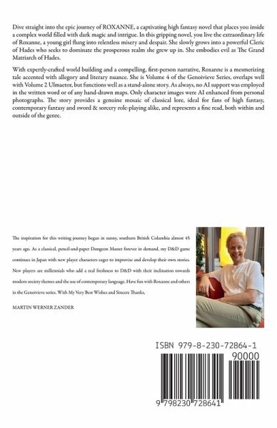 Dive straight into this newly updated epic journey of ROXANNE, a captivating high fantasy novel that places you inside a complex world filled with dark magic and intrigue. In this gripping novel, you live the extraordinary life of Roxanne, a young girl flung into relentless misery and despair. She slowly grows into a powerful Cleric of Hades who seeks to dominate the prosperous realm she grew up in. She embodies evil. As The Grand Matriarch of Hades, Roxanne is the diametric opposite of Genoivieve's status as The Grand Matriarch of Aphrodite. Genoivieve represents resilience and honor, demonstrating a unique goodness that inspires. Roxanne is the mythical opposition, but nothing like any common villain or typical trope. Because her life has ordinary roots just like anyone, we learn to understand and appreciate her actions. We see her deal with and develop prodigious inner demons, and young Roxy soon discovers that her destiny under Hades is intricately linked to the world. While embracing evil, she walks along traditional themes of hard work, diligence, leadership, resourcefulness, excellence and integrity. She is a leader who surprises the world with her explosive popularity and growth. Roxanne manages to inspire a number of important characters, particularly Ulmaetor, his twin brother Ulrich, and the two step sisters who begin as Roxanne's spiritual acolytes. All four installments to the GENOIVIEVE series definitely make a case for an increased female readership in a genre that has historically been male-oriented. With expertly-crafted world building and a compelling, first-person narrative, Roxanne is a mesmerizing tale accented with allegory and literary nuance. She is Volume 4 of the Genoivieve Series, overlaps well with Volume 2 Ulmaetor, but functions well as a stand-alone story. As always, no AI support was employed in the written word or of any hand-drawn maps. Only character images were AI enhanced from personal photographs. The story provides a genuine mosaic of classical lore, ideal for fans of high fantasy, contemporary fantasy and sword & sorcery role-playing alike, and represents a fine read, both within and outside of the genre.