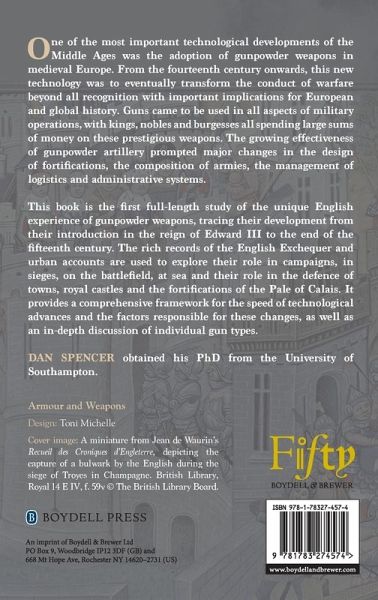 One of the most important technological developments of the Middle Ages was the adoption of gunpowder weapons in medieval Europe. From the fourteenth century onwards, this new technology was to eventually transform the conduct of warfare beyond all recognition with important implications for European and global history. Guns came to be used in all aspects of military operations, with kings, nobles and burgesses all spending large sums of money on these prestigious weapons. The growing effectiveness of gunpowder artillery prompted major changes in the design of fortifications, the composition of armies, the management of logistics and administrative systems. This book is the first full-length study of the unique English experience of gunpowder weapons, tracing their development from their introduction in the reign of Edward III to the end of the fifteenth century. The rich records of the English Exchequer and urban accounts are used to explore their role in campaigns, in sieges, on the battlefield, at sea and their role in the defence of towns, royal castles and the fortifications of the Pale of Calais. It provides a comprehensive framework for the speed of technological advances and the factors responsible for these changes, as well as an in-depth discussion of individual gun types. DAN SPENCER obtained his PhD from the University of Southampton.