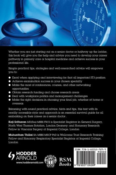 Whether you are just starting out as a senior doctor or half way up the ladder, this book will give you the help and advice you need to develop your career pathway in primary care or hospital medicine and achieve success in your professional life. Simple, practical tips; strategies; and well-researched advice will empower you to: Excel when applying and interviewing for that all-important ST3 position Achieve examination success in your chosen specialty Make the most of conferences, courses, and other networking opportunities Obtain research funding and choose research areas Deal with workplace politics and management challenges Make the right decisions in choosing your final job, whether at home or overseas Brimming with sound practical advice, hints, and tips, this text with its readily accessible style and approach is an essential survival guide for all embarking on their carrer as a senior doctor.