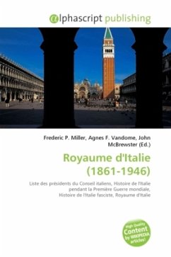 High Quality Content by WIKIPEDIA articles! Le royaume d'Italie, gouverné par la dynastie royale des Savoie, est le nom de l'État italien de 1861 à 1946. Durant la période allant de 1922 à 1943, le Royaume, dirigé par le gouvernement fasciste de Benito Mussolini, est couramment désigné sous le terme d'Italie fasciste, sans que le régime monarchique ne soit interrompu. Le royaume d'Italie, privé de Nice et de la Savoie cédées à la France en 1860, est issu du royaume de Sardaigne après une période de guerres d'indépendances dénommée il risorgimento. La période du règne de Victor-Emmanuel II de Savoie qui va de 1859 à 1861 est aussi appelé Victor-Emmanuel II Roi Élu ce qui désigne bien la manière dont il a accédé au trône d'Italie. En effet, en 1860 le duché de Parme, le duché de Modène et le grand-duché de Toscane votent des plébiscites pour l'union au royaume. La même année, le royaume des Deux-Siciles est conquis grâce à l expédition des Mille et la Romagne, les Marches et l'Ombrie sont enlevés aux États pontificaux par les Piémontais.