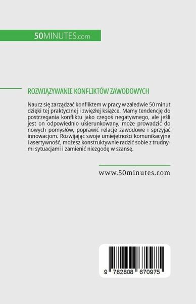 Naucz si¿ zarz¿dzä konfliktem w pracy w zaledwie 50 minut dzi¿ki tej praktycznej i zwi¿z¿ej ksi¿¿ce. Mamy tendencj¿ do postrzegania konfliktu jako czego¿ negatywnego, ale je¿li jest on odpowiednio ukierunkowany, mo¿e prowadzi¿ do nowych pomys¿ów, poprawi¿ relacje zawodowe i sprzyjä innowacjom. Rozwijaj¿c swoje umiej¿tno¿ci komunikacyjne i asertywno¿¿, mo¿esz konstruktywnie radzi¿ sobie z trudnymi sytuacjami i zamieni¿ niezgod¿ w szans¿. Z tej ksi¿¿ki dowiesz si¿, jak pozytywne radzenie sobie z konfliktem mo¿e poprawi¿ twoje ¿rodowisko pracy. Zawiera równie¿ przydatne wskazówki dotycz¿ce roz¿adowywania napi¿¿ oraz porady dotycz¿ce jasnego i szczerego komunikowania si¿, daj¿c ci narz¿dzia potrzebne do skutecznego rozwi¿zywania konfliktów.