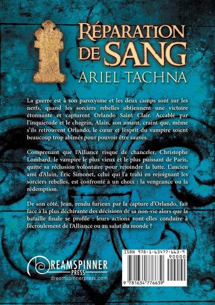 Suite de Conflit de sang Partenariat de Sang, tome 4 La guerre est à son paroxysme et les deux camps sont sur les nerfs, quand les sorciers rebelles obtiennent une victoire étonnante et capturent Orlando Saint Clair. Accablé par l¿inquiétude et le chagrin, Alain, son amant, craint que, même s¿ils retrouvent Orlando, le c¿ur et l¿esprit du vampire soient beaucoup trop abîmés pour pouvoir être sauvés. Comprenant que l¿Alliance risque de chanceler, Christophe Lombard, le vampire le plus vieux et le plus puissant de Paris, quitte sa réclusion volontaire pour rejoindre la lutte. L¿ancien ami d¿Alain, Éric Simonet, celui qui l¿a trahi en rejoignant les sorciers rebelles, est confronté à un choix : la vengeance ou la rédemption. De son côté, Jean, rendu furieux par la capture d¿Orlando, fait face à la plus déchirante des décisions de sa non-vie alors que la bataille finale se profile : leurs actions vont-elles conduire à l¿écroulement de l¿Alliance ou au salut du monde ?