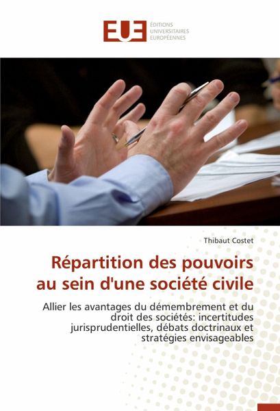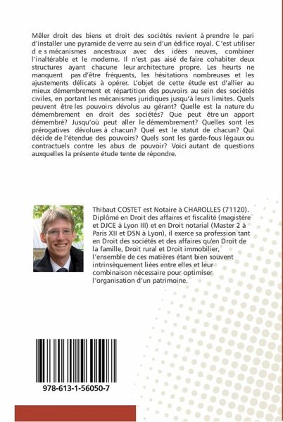 Mêler droit des biens et droit des sociétés revient à prendre le pari d'installer une pyramide de verre au sein d'un édifice royal. C'est utiliser des mécanismes ancestraux avec des idées neuves, combiner l'inaltérable et le moderne. Il n'est pas aisé de faire cohabiter deux structures ayant chacune leur architecture propre. Les heurts ne manquent pas d'être fréquents, les hésitations nombreuses et les ajustements délicats à opérer. L'objet de cette étude est d'allier au mieux démembrement et répartition des pouvoirs au sein des sociétés civiles, en portant les mécanismes juridiques jusqu'à leurs limites. Quels peuvent être les pouvoirs dévolus au gérant? Quelle est la nature du démembrement en droit des sociétés? Que peut être un apport démembré? Jusqu'où peut aller le démembrement? Quelles sont les prérogatives dévolues à chacun? Quel est le statut de chacun? Qui décide de l'étendue des pouvoirs? Quels sont les garde-fous légaux ou contractuels contre les abus de pouvoir? Voici autant de questions auxquelles la présente étude tente de répondre.