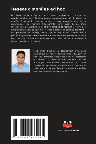 Le réseau mobile ad hoc est un système complexe qui comprend des noeuds mobiles sans fil dynamiques, auto-configurés et distribués de manière à permettre aux personnes et aux appareils sans fil de communiquer de manière transparente sans avoir besoin d'une infrastructure préexistante. Il s'agit d'un domaine de recherche évolutif dont l'intérêt croît de jour en jour. Ce livre vise à éclairer le domaine des MANET, des protocoles de routage, de la classification et de la simulation. Il présente également l'environnement de simulation des protocoles AODV et DSDV les plus prometteurs et évalue leurs performances en fonction de divers paramètres de réseau.