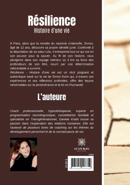 À Paris, alors que la montée du nazisme s'intensifie, Simon, âgé de 12 ans, découvre sa propre identité juive. Confronté à la déportation de sa s¿ur Léa, il entreprend tout ce qui est en son pouvoir pour la sauver. Au fil de son histoire, vous plongerez dans son voyage intérieur où il tire sa force des profondeurs de son être, nourri par une détermination inébranlable à survivre. Résilience - Histoire d'une vie est un récit poignant et authentique basé sur la vie de Simon Kohn qui, à travers ses expériences et ses réflexions profondes, offre des leçons inestimables sur la persévérance et la foi en l'humanité.